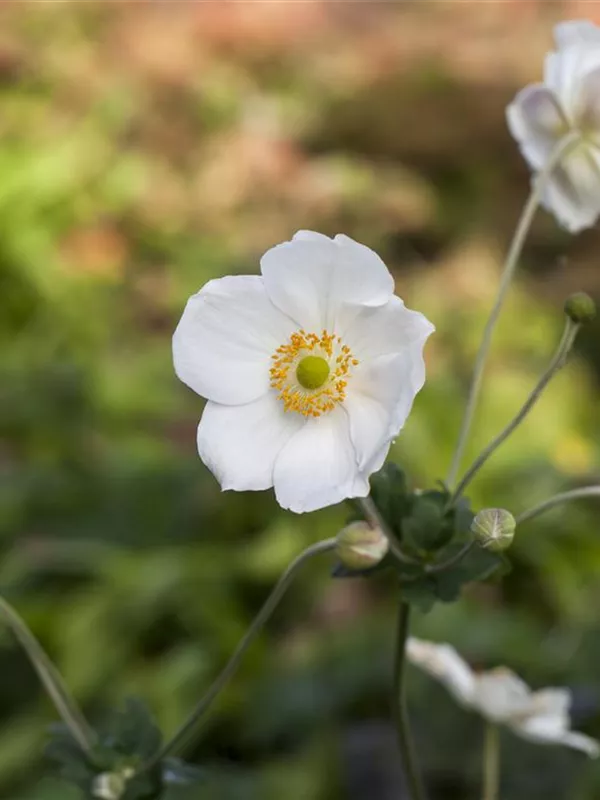 Die Garten-Herbst-Anemone (Anemone japonica) bringt ansehnliche, weiße Blüten von August bis Oktober hervor. Bevorzugt wird ein durchlässiger, humoser Boden in sonniger bis halbschattiger Lage. Die rhizombildende, aufrechte Staude erreicht gewöhnlich eine Höhe von 60 - 80 cm und wird bis zu 40 cm breit.