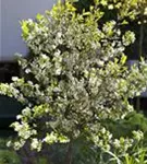 Die Kahle Apfelbeere ist sehr zu Unrecht ein seltener Gast im Garten. In Russland dagegen wird die Heilwirkung seit Jahrhunderten geschätzt. Die kleinen dunklen Früchte, die so gar nicht an Äpfel denken lassen, können zu Saft oder Marmelade verarbeitet werden. Wer die Beeren nicht naschen möchte, der erfreut sich an den weißen Blüten im Mai oder bewundert die braunrote Herbstfärbung. Die Pflanze wächst buschartig und passt sich jeder Umgebung an.