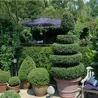 So schön und beruhigend die vielen Formen auch sind: nicht jedes Gehölz eignet sich gleich gut als Formgehölz. Da wäre zum einen der absolute Klassiker, der Buchsbaum. Aber nicht nur er, auch andere Laubgehölze eigenen sich als Formgehölz. Dazu gehört vor allem die Berberitze, die Hainbuche, die Zweigmispel und der Weißdorn. Das besondere an der Hainbuche? Sie trägt auch im Winter noch ihre Blätter und ist der perfekte botanische Sichtschutz im Garten. Besonders gut geeignet und vor allem auch schnittverträglich sind außerdem Liguster und die Rotbuche. Die Schnittverträglichkeit ist das A und O, damit die Formgehölze nicht eingehen oder gar sterben. Auch die Fraktion der winterharten Gehölze hat einiges zu bieten: Zypressen eignen sich aufgrund der natürlichen Wuchsform schon besonders gut als Kegel und auch Wacholder lässt sich sehr gerne in Form bringen. Und wem die heimischen Gehölze nicht ausreichen, der greift in die mediterrane Trickkiste und zieht Lorbeer, Lavendel oder Myrte aus dem Hut der Formgehölze. Die Entscheidung, welches Gehölz am besten passt, muss jeder Gartenbesitzer selbst treffen.